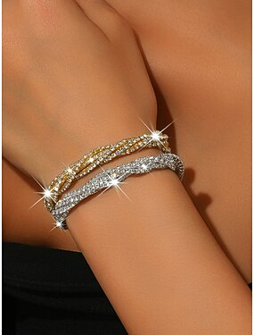 женское золото &Комплект серебряных браслетов со стразами - сверкающие двухцветные браслеты из кристаллов, элегантные украшения для вечеринок и выпускных балов &специальные мероприятия