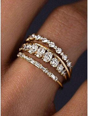 Женский набор колец из сплава для ношения в несколько рядов, кольца с кубическим цирконием золотого и серебряного цвета, элегантный минималистичный стиль, идеально подходит для невест, свадебных церемоний, помолвок и повседневной носки.