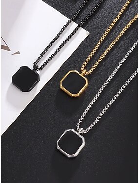 Мужская цепочка с квадратным кулоном из нержавеющей стали черного цвета – минималистичное геометрическое украшение в виде коробочки из золота, серебра и черного цвета, модный аксессуар для повседневной носки, делового стиля и отдыха.