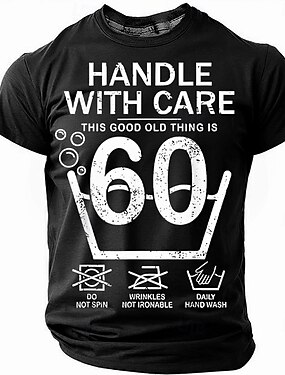 Забавная графическая футболка на 60-й день рождения "Обращайтесь бережно этому хорошему старику 60" Инструкция по стирке Юмор Короткий рукав Стиль жизни