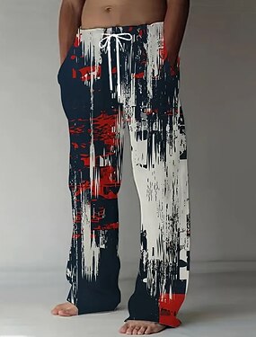 Муж. Абстракция Градиент цвета Штаны Мешковатые брюки Повседневные брюки Нормальная На каждый день на открытом воздухе Отпуск Эластичный шнурок на талии Брюки из льняной ткани с карманами Весна Осень