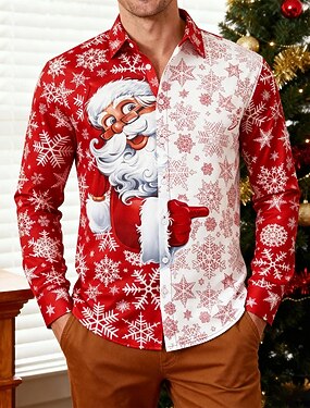 Рождество Длинные рукава Рубашка на пуговицах Дед Мороз Графический Оригинальные Забавный для Муж. Взрослые 3D печать для Рождество Карнавал Новый год Для вечеринок