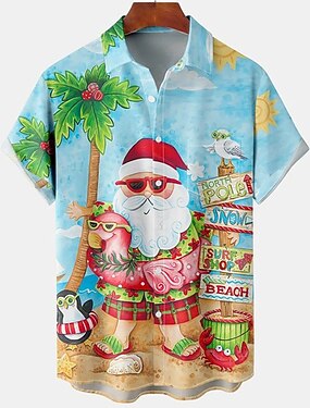 рождественская мужская гавайская рубашка с Санта-Клаусом гавайская графика Санты | для улицы, синий хлопок | пляж | рубашки с принтом алоха-клауса, отложной воротник, 3D, короткие рукава, одежда с