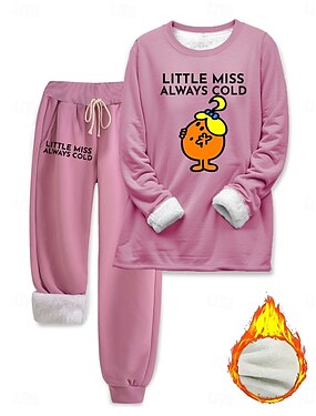 Женский комплект пижам флисовая подкладка элегантная теплая модная двухкомпонентные наборы спортивные брюки длинные рукава круглый вырез графический принт наружные отпуска повседневные розовый