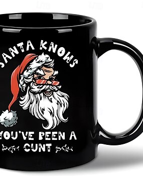рождественская подарочная кружка черная графическая забавная кофейная кружка 330 мл/12 унций Санта знает керамическая чашка ретро винтажный дизайн