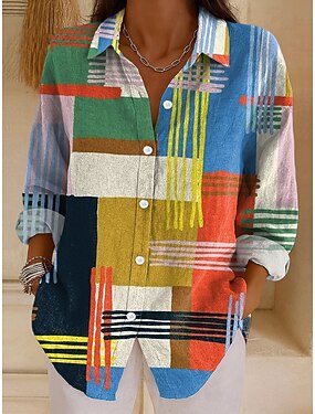 Женская рубашка из льняного материала дышащая легкая с графическим дизайном геометрия стильная современная повседневная с длинным рукавом рукавами епископа воротник обычная принт на повседневный