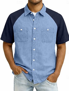 Муж. Рубашка Повседневная рубашка Выцветшая рубашка Окрашенная одежда Рубашка из 100% хлопка с кислотной стиркой Синий Розовый Зеленый Абрикосовый Серый С короткими рукавами Полотняное плетение