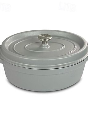 чугунная овальная кастрюля с крышкой-каплесборником светло-серого цвета