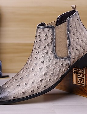 Мужские серые ботинки челси из искусственной кожи – туфли с рисунком страуса, без застежек, для деловых встреч, официальных мероприятий и повседневной носки