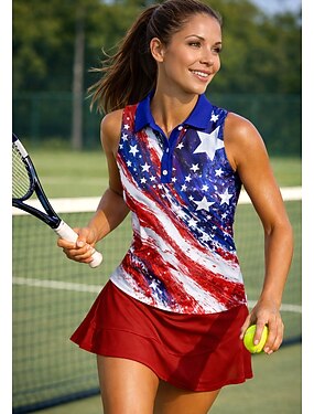 250-летие Америки День независимости Жен. Геометрический принт Флаги Топы Спортивная рубашка Футболка-поло Майка Без рукавов Цветочный Пуговицы UPF50