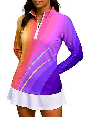Жен. Радужный В полоску Спортивная рубашка Теннисная рубашка Теннисный топ Длинный рукав Молния Цветочный UPF50+ Устойчивость к УФ Эластичность Влагоотводящие Дышащий Волейбол Теннис Гольф