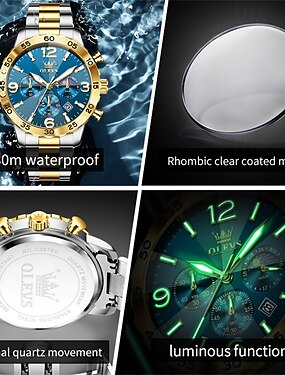 Новые Мужские бизнес часы Olevs имеют светящийся календарь лунной фазы Малые три стрелки Многофункциональные цифровые большие циферблат кварцевые часы которые являются модными повседневными