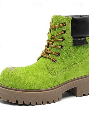 Мужские винтажные зеленые ботинки из искусственной замши на шнуровке с ручной прострочкой и теплой флисовой подкладкой – повседневная удобная обувь для отдыха на открытом воздухе