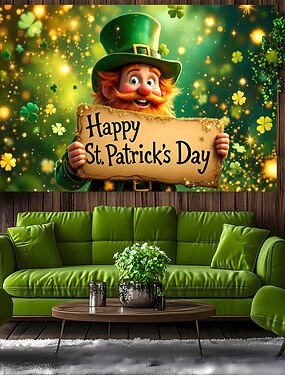 День Св.Патрика гобелен Плакаты Одеяло Животный принт Зеленая шляпа Симпатичные Стиль Романтика 3D Спальня Гостиная Общежитие Комната для подростков Общежитие колледжа Стена крыльца Домашний декор