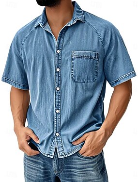 Муж. Рубашка Ковбойская рубашка Рубашка из 100% хлопка с кислотной стиркой Синий Черный Лиловый Зеленый Хаки С короткими рукавами Полотняное плетение Лацкан Повседневные на открытом воздухе Карман