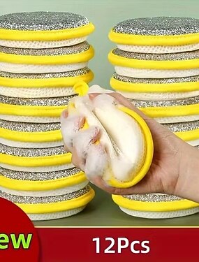 12 прочных кухонных губок и скребков для чистки — не царапающие поверхность, штабелируемые тряпки для мытья посуды, зеленый цвет с бежевой поверхностью — для посуды, кастрюль, сковородок, столешниц —
