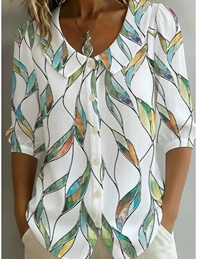 Жен. Рубашка Бохо Рубашка Цветочный принт Графика Полоски Элегантный стиль Богемия Отпуск Воротник Питер Пен Обычные топы Повседневные Праздники На выход Синий Желтый Зеленый Лето Весна
