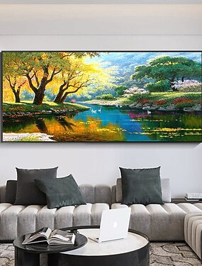 картина маслом 100% ручная роспись ручная роспись стены искусства на холсте реалистичный пейзаж зеленый вид на озеро украшение дома декор свернутый холст без рамки нерастянутый