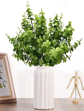 4 пучка искусственных стеблей эвкалипта, искусственные листья эвкалипта сорта «Серебряный доллар», ветки зелени для вазовой композиции. &декор дома