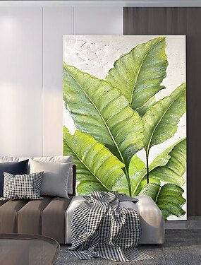 Картина маслом ручной работы на холсте, настенное искусство, украшение, абстрактные зеленые растения, банановый лист, для декора дома, гостиной, подвесная картина на подрамнике/рулонная безрамная