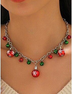 Женское рождественское ожерелье из сплава с красными и зелеными колокольчиками, украшение в виде снежинок, идеально подходит для праздничного образа и в качестве подарка