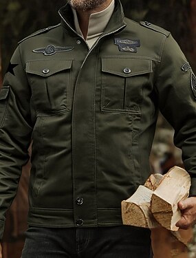 Муж. Графика Звезда Куртка-карго Ветровка Военная куртка практический На каждый день на открытом воздухе Отдых и туризм Вышивка Боковые карманы Застежка-молния спереди Осень Зима Воротник-стойка