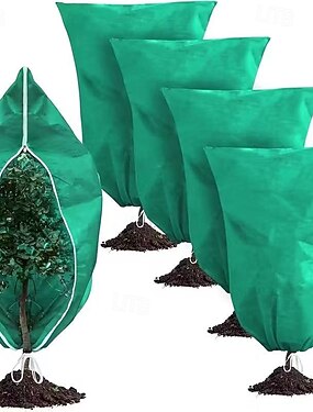 Упаковка из 3 чехлов для растений, защита от заморозков, большие зеленые морозостойкие пакеты с застежкой-молнией и шнурком, защита деревьев и кустарников от заморозков зимой для ухода за садовыми