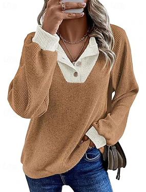 Жен. Пуловер Толстовка Контрастных цветов На каждый день Длинный рукав V-образный вырез Обычные топы Дом Для улицы Праздники Пэчворк Пуговицы Черный Зеленый Цвет хаки Темно-синий Серый Осень Зима