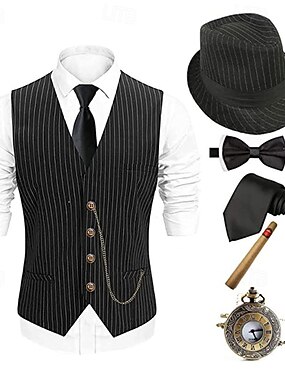Великий Гэтсби барин Гангстер Ретро Бурные 20-е 1920-е годы Инвентарь Жилет Панама шляпа Набор аксессуаров Муж. Костюм Винтаж Косплей Выпускной фестиваль Косыночная повязка Рождество