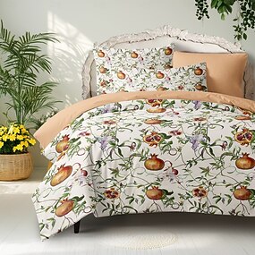 Комплект пододеяльников с гранатом и фруктами, комплект из хлопка с узором тропических растений, мягкий роскошный комплект постельного белья из 3 предметов, домашний декор, подарок, двойное полное