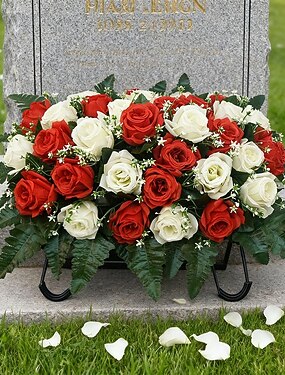 Искусственные цветы для надгробия на кладбище, цветы для мемориала, розы, украшение могилы, не растекаются, легко устанавливаются.