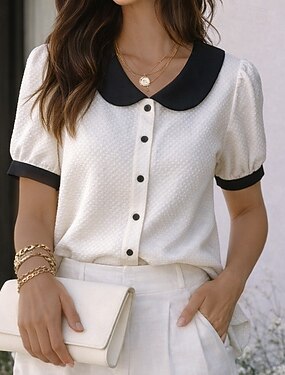 Жен. Рубашка Вафельная рубашка Повседневная рубашка Кнопка рубашка Сплошной цвет Полотняное плетение Элегантный стиль Отпуск Мода С короткими рукавами Воротник Питер Пен Обычные топы