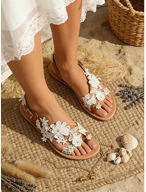 женские белые босоножки для невесты с цветочным кружевом – свадебные босоножки ручной работы на плоской подошве для пляжных и бохо-свадьб