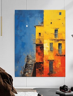 Картина маслом ручной работы на холсте, настенное искусство, украшение, впечатление, красочное здание для дома, гостиной, кабинета, декор, рулон, безрамная, нерастянутая картина