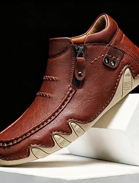 Мужские мокасины из искусственной кожи каштанового цвета с боковой молнией и гибкой подошвой, повседневные туфли ручной работы для вождения и ношения на открытом воздухе