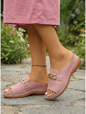 Розовые женские сандалии-сабо – с открытым носком, ручной работы, удобные сандалии с металлической пряжкой для сада и путешествий. &повседневная одежда