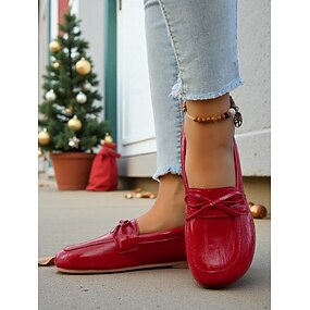Женские лоферы мягкие туфли широкие комфортные туфли рождественские повседневные для Дня матери бантик плоский каблук круглой носок классическая повседневная комфортная искусственная кожа черные