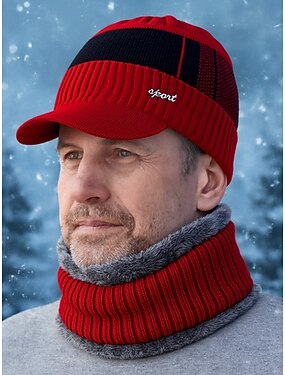 Мужской рождественский вязаный комплект из шапки и гетры – теплая, стильная зимняя шапка с меховой подкладкой для шеи в нескольких цветах для отдыха на свежем воздухе и зимних видов спорта