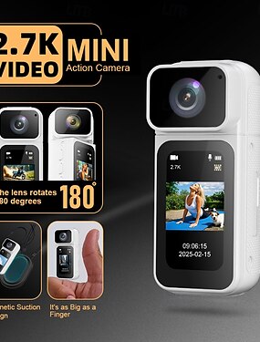 Миниатюрная нательная камера с Wi-Fi 2,7K, POV-камера с поворотным на 180 градусов объективом, миниатюрная спортивная камера с 1,47-дюймовым HD-экраном для визуализации и фотосъемки, для ежедневной