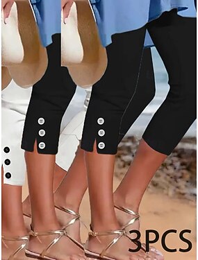 3 шт. женские брюки-капри узкие чиносы укороченные для отдыха базовые повседневные длиной до икры натуральные однотонные разрезы комфортные быстросохнущие мягкие эластичные для отдыха повседневные