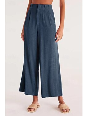 Жен. Искусственный хлопок и лен Широкие Брюки На каждый день Полная длина Средняя талия Полотняное плетение Карман удобный На открытом воздухе Для улицы На выход