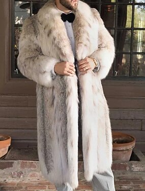 Муж. Зимнее пальто Пальто с мехом Пальто Отпуск Повседневные Зима Полиэстер Мягкий На открытом воздухе Верхняя одежда Одежда Наколенники Удобная обувь Леопард Карман Лацкан