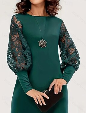 Жен. Платье средней длины Кружевное платье Платье с капюшоном Платье-футляр Элегантный стиль Современное на открытом воздухе Праздники На выход Стандартный Полотняное плетение Длинный рукав