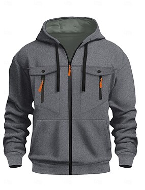 Муж. Толстовка с капюшоном на молнии Балахон на молнии Тактическая толстовка Черный Военно-зеленный Темно синий Хаки Светло-серый Капюшон Полотняное плетение Мульти карман Карманы на молнии