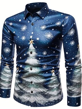 рождественская елка повседневная мужская рубашка повседневная одежда выход на улицу осень&зимняя рубашка с отложным воротником и длинными рукавами темно-синего цвета s, m, l из ткани,