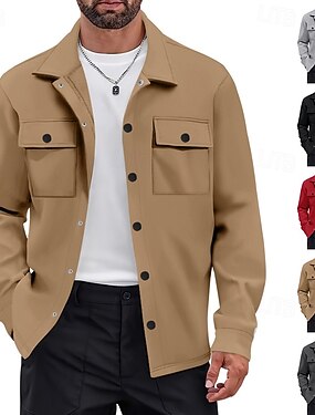 Муж. Легкая куртка Куртка-карго Повседневная куртка Отпуск Повседневные Сохраняет тепло Карман Весна Осень Полотняное плетение Мода Классика Лацкан Обычная