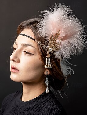 Ретро Бурные 20-е 1920-е годы Обруч в стиле флэппер Головные уборы Аксессуары для создания прически Великий Гэтсби Перо Маскарадный костюм Жен. Рождество Карнавал