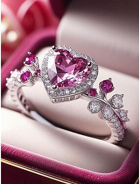Женское кольцо в форме сердца с розовым камнем – сплав, розовые и прозрачные камни, элегантный дизайн – идеально подходит для свадеб и Дня святого Валентина.