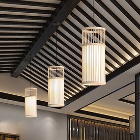 Цилиндрические креативные подвесные светильники, бежевые плетеные бамбуковые светильники, антикварные украшения, потолочная люстра, свет ручной работы, домашний декор, люстра для деревенского