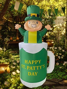 Надувная ирландская декорация ко Дню Святого Патрика, высотой 1,8 м/6 футов, со светодиодной подсветкой, в виде пивного бокала и зеленого эльфа, для использования внутри и снаружи помещений, во дворе,